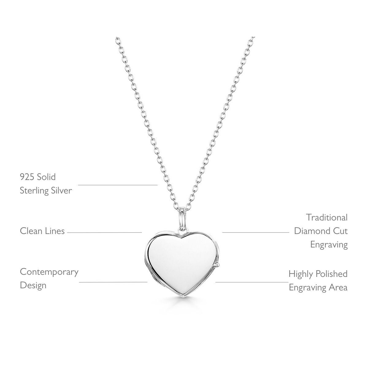 Solid sterling silver Little Personalised Heart Locket. This beautiful piece from LoveLox is a popular favourite in the collection, boasting classic heart proportions but in a contemporary finish with clean lines and exquisite engineering. The discreet hinge is seamlessly designed into the flow of the heart while the clasp offers a balance on the opposite side.