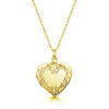 Solid sterling silver personalised locket plated in 9ct gold from LoveLox, finished by Engravers Guild of London. The scroll embellishment on the front of the locket is carried out by hand, showcasing the skill of the craftsmanship and making a very special item. The form of the piece is exquisite, with the hinge seamlessly flowing into the shape of the heart, and the necklace is hand polished to a brilliant gleam.