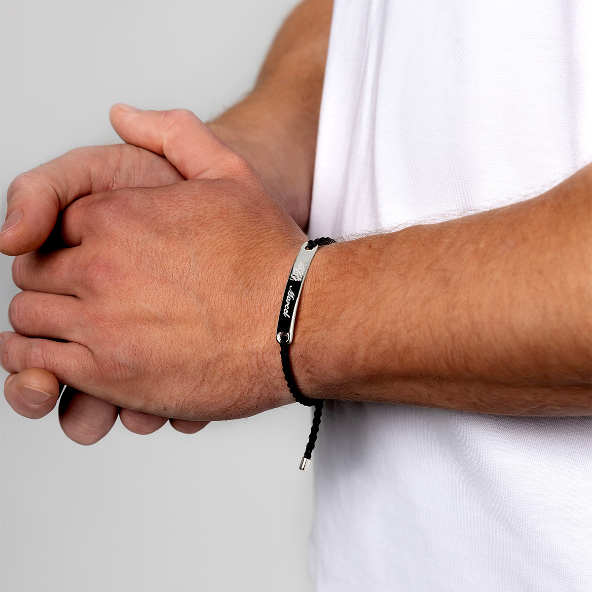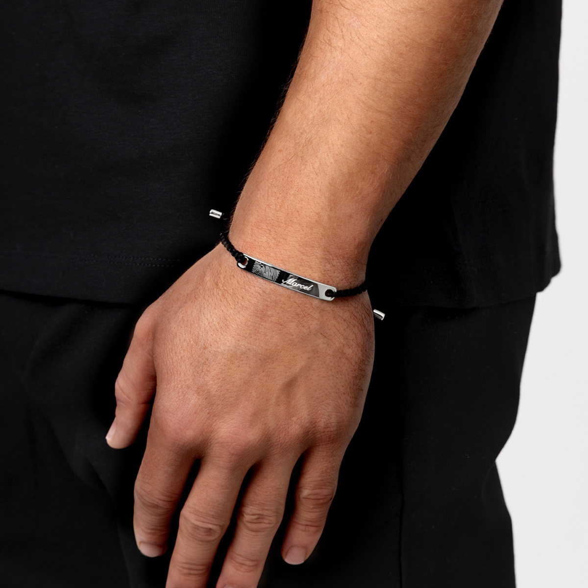 The Plate Braided Bracelet is a modern accessory for those who appreciate understated style. Featuring a name plate crafted from 925 sterling silver, the bracelet is paired with a braided black cord with an adjustable closure for a perfect fit.