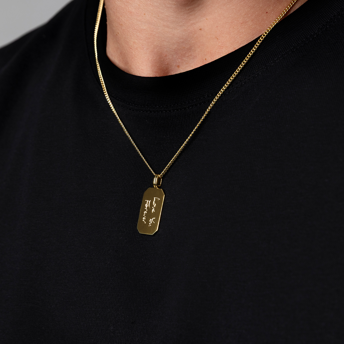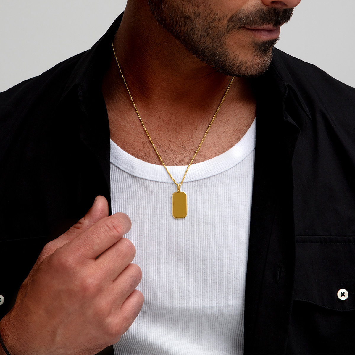 Octagonal Dog Tag Men’s Necklace – 18K Gold Plated Solid Silver