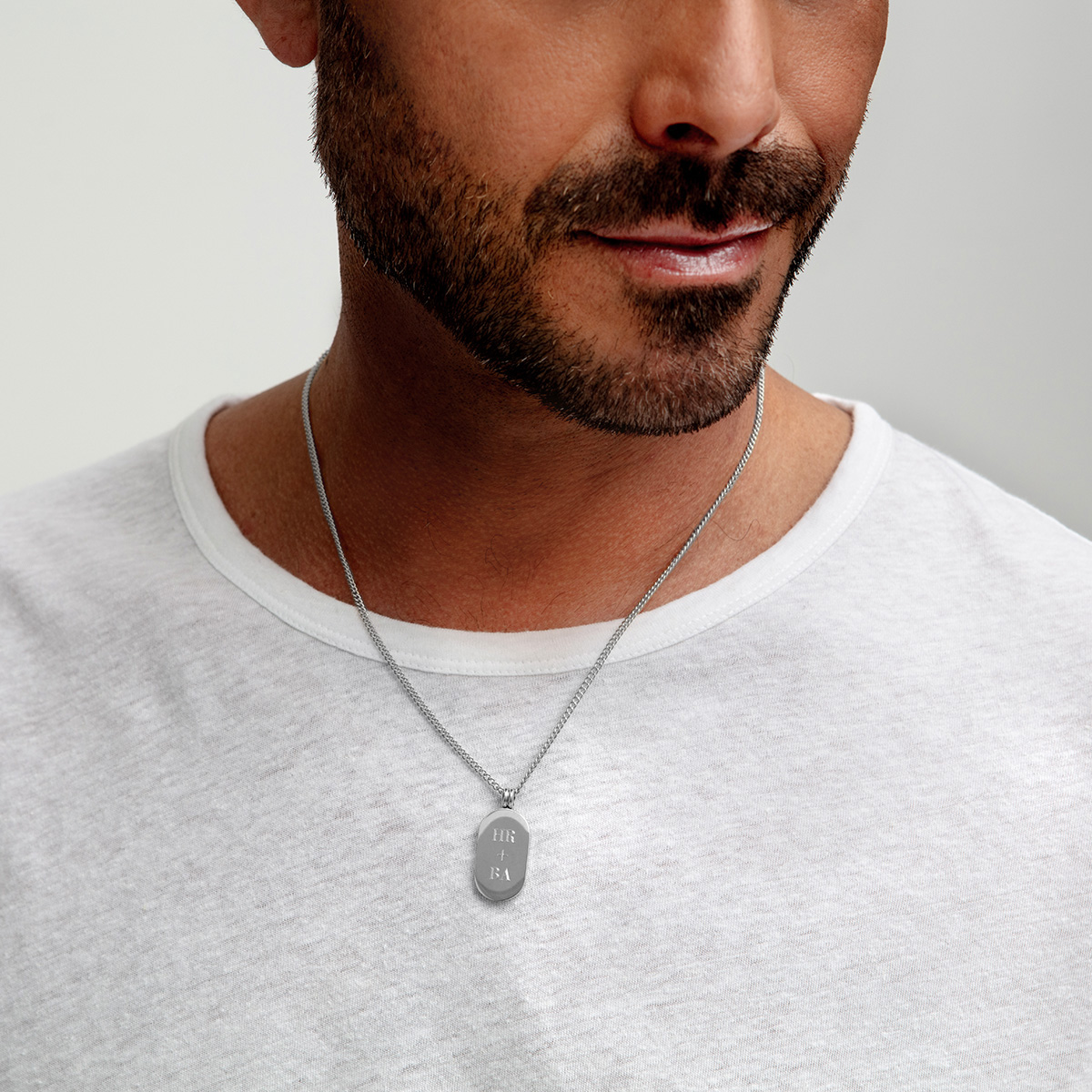 The pill-shaped pendant boasts clean lines, a highly polished surface, and a signature double bail, making it a modern accessory that elevates any wardrobe.