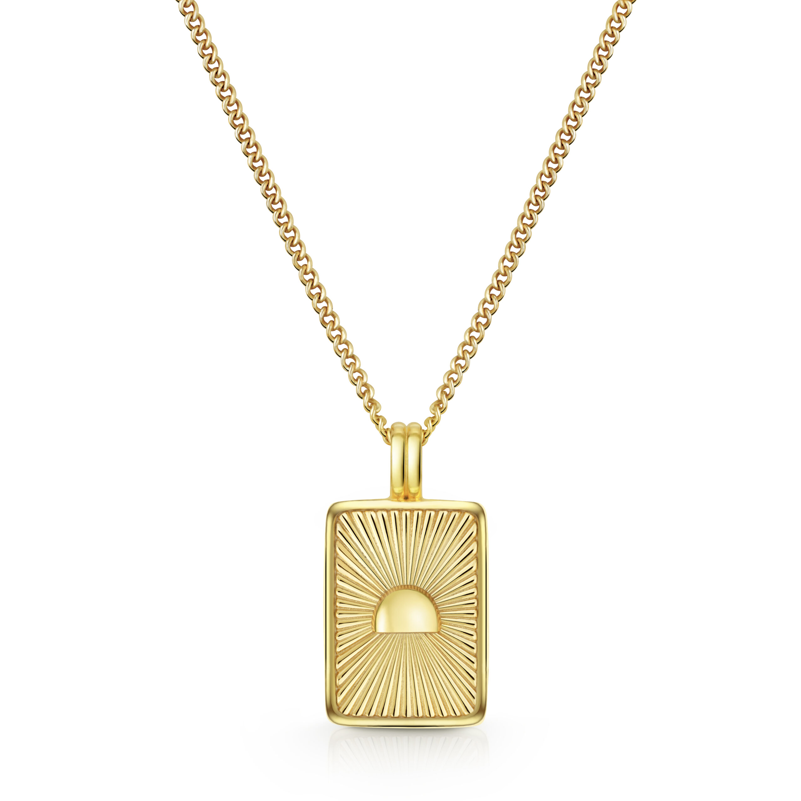 This men’s pendant features a bold rectangular design, embossed with a rising sun motif that symbolises hope, renewal, and fresh beginnings.