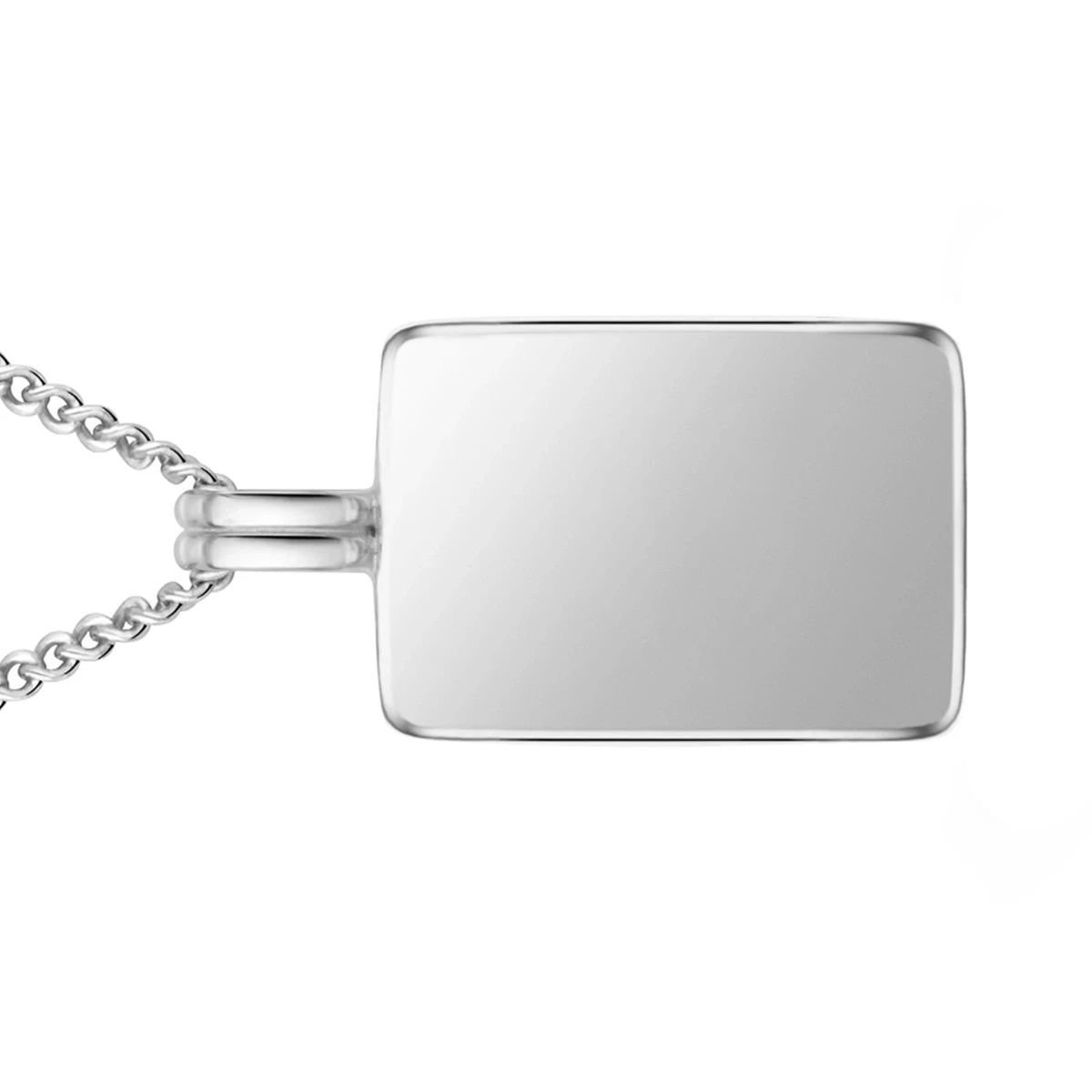 Crafted from 925 sterling silver, the pendant is built for lasting quality while carrying a modern edge. The reverse side offers a smooth surface that can be engraved with a name, initials, or date for a personal touch.