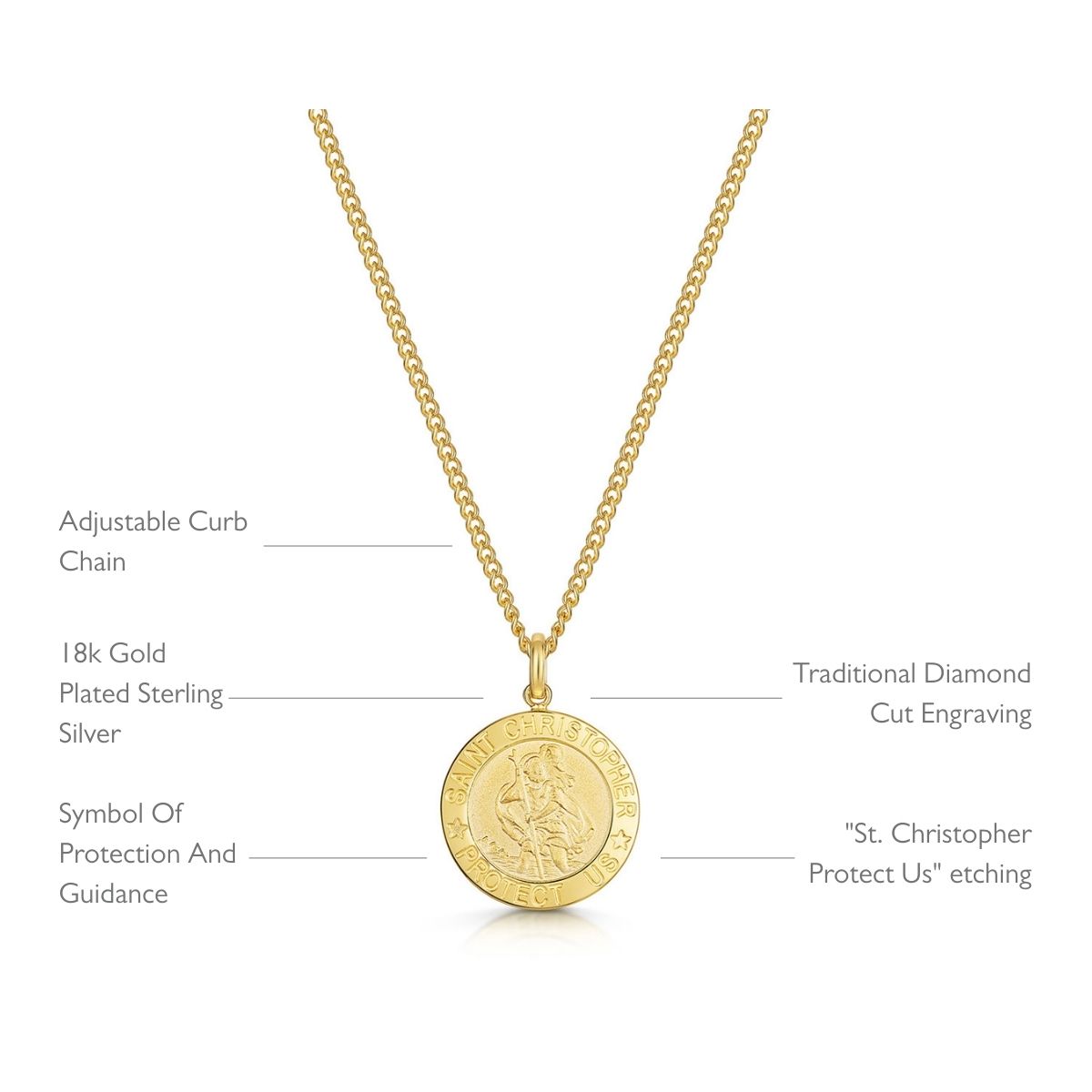 St Christopher Protect Us Round Necklace – 18K Gold Plated Solid Silver