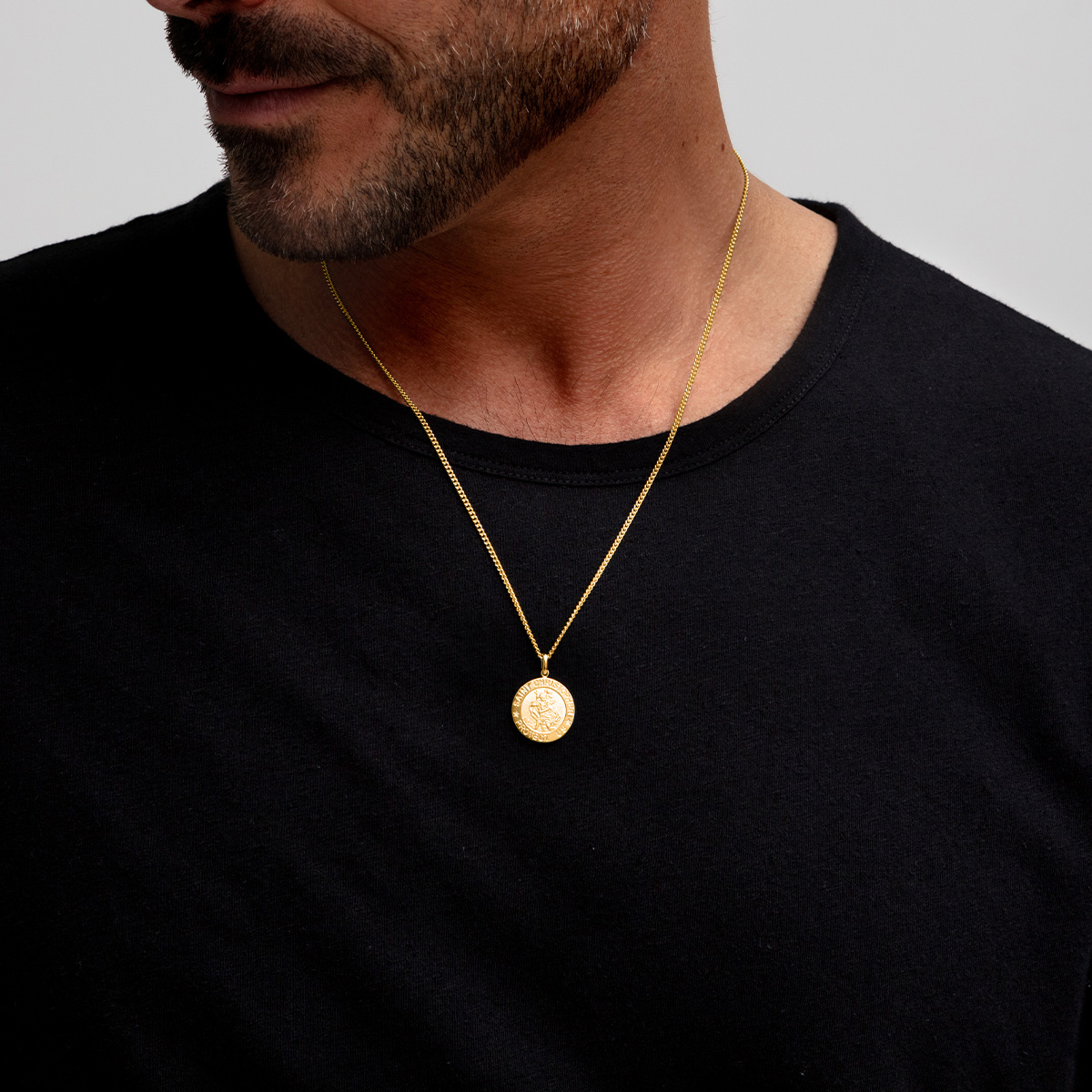 Home > Products > For Him > Mens Necklaces > St Christopher Protect Us Round Necklace – 18K Gold Plated Solid Silver
