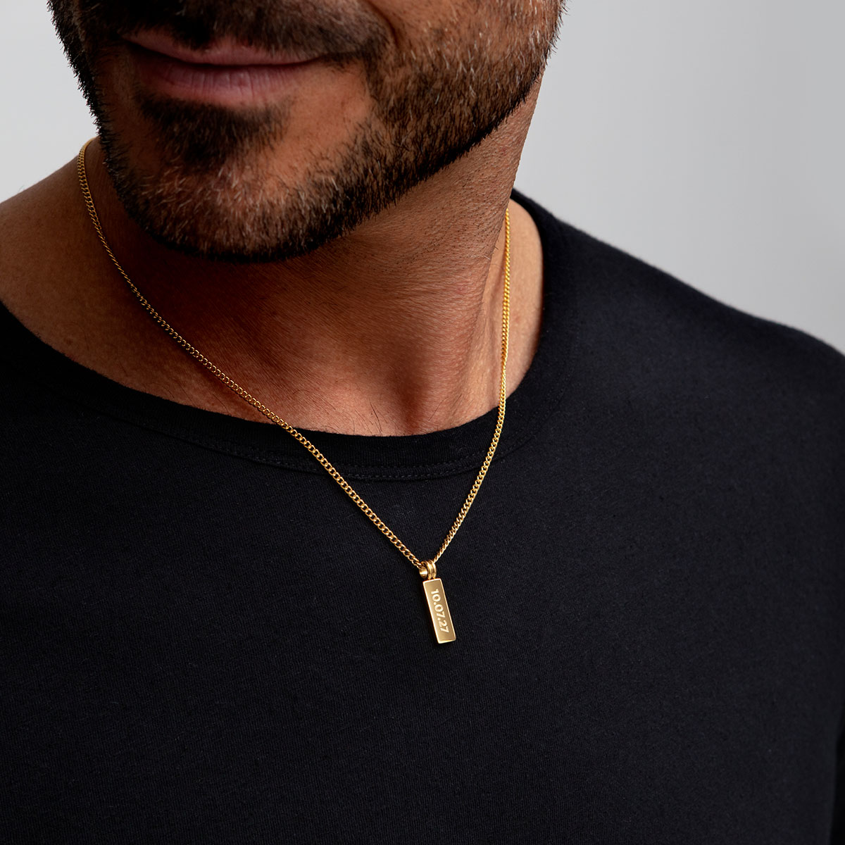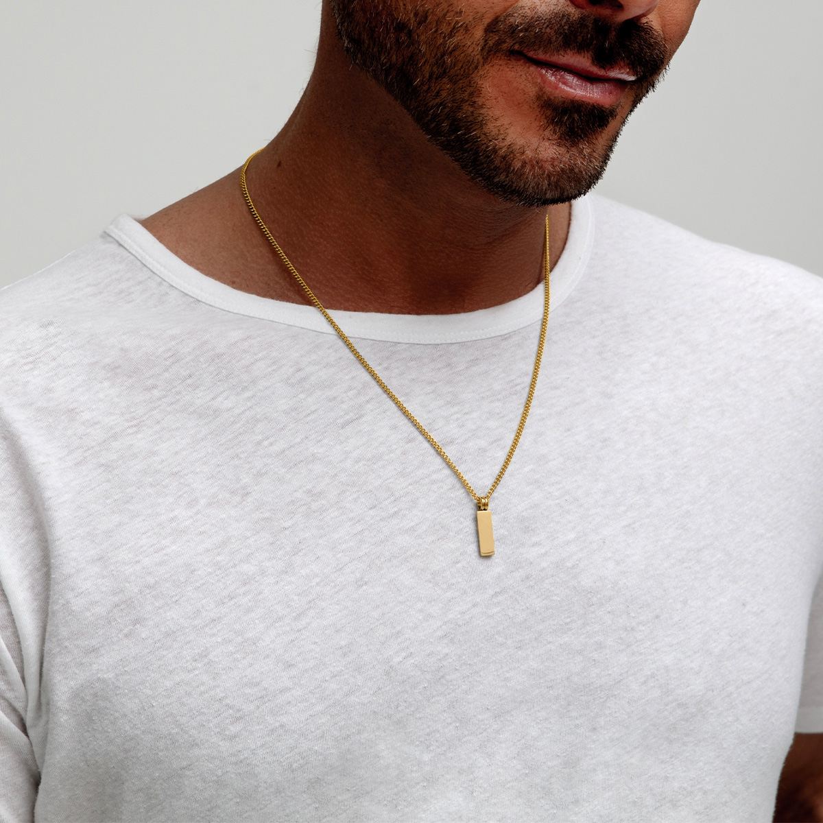A subtle statement piece for the modern gentleman, the Tag pendant and chain from Clewley are crafted from stainless steel plated with 18K gold, making for a durable necklace for everyday wear.