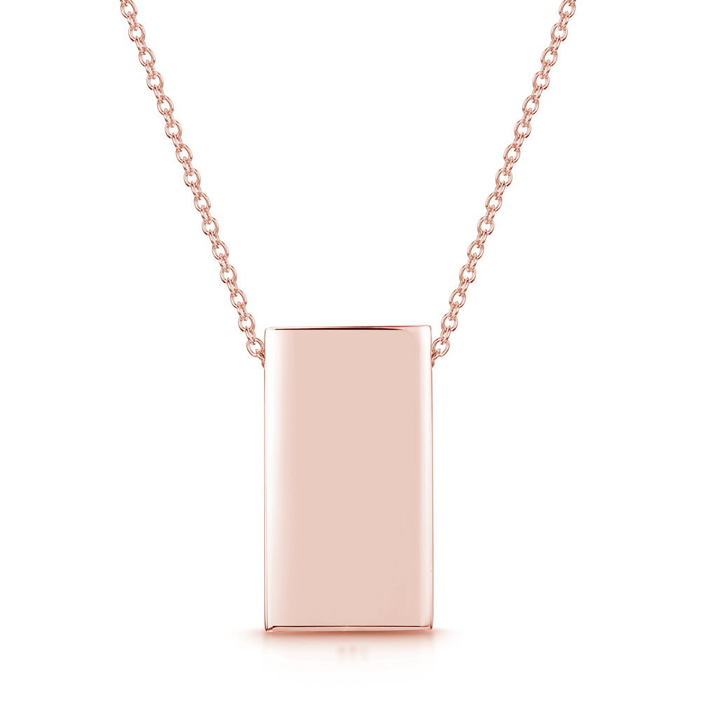 Solid 925 sterling silver pendant plated in rose gold from MYRI London, personalised by Engravers Guild. Sleek and clean lines define this exquisite piece, paring the design back to its simplest form and creating a contemporary yet timeless style. The substantial pendant perfectly showcases a personalised message, which can be engraved on either the front or reverse. With the engraving made with a precision diamond-tipped cutter, the engraved necklace is ideally suited for those occasions where you want to say a little more.