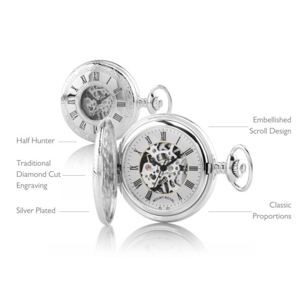 Personalised pocket watches from Mount Royal offer superlative quality at wonderful value. A comprehensive range covering half-hunter, double-hunter, mechanical and quartz movements, Mount Royal is one of the most respected names in the market for distinguished engraved pocket watches.