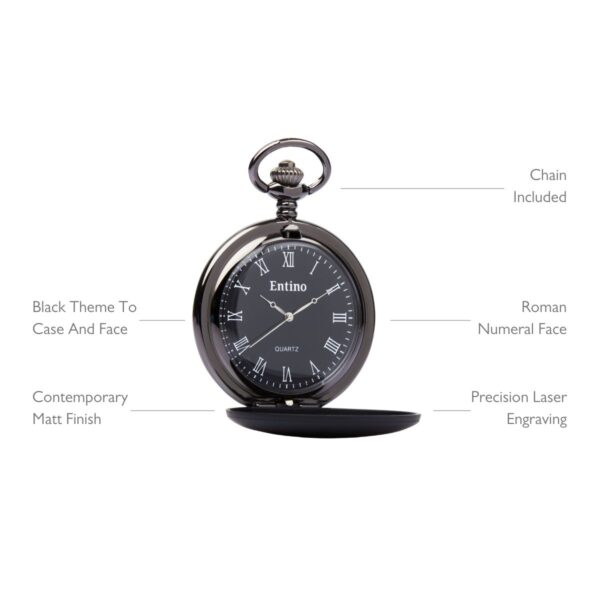 Starting from £24.95, the Alpine pocket watch boasts a beautiful finish, a precision quartz movement and luxury steel chain. A clear open face and crisp detailing on the dial make this the most popular engraved pocket watch from Engravers Guild and has generated scores of positive reviews.