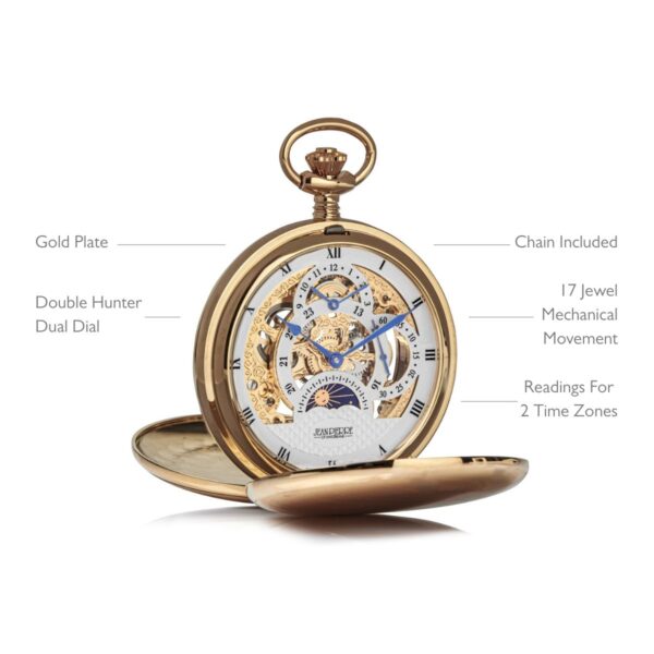 Double Hunter Dual Dial Moon-Dial Pocket Watch – Gold Plate