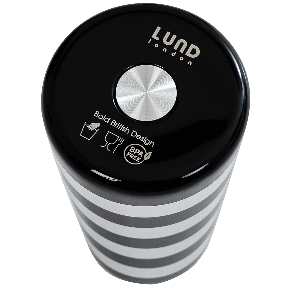 The original Skittle bottle from the eponymous British design company, Lund London. This personalised water bottle features black and white stripes, with a bright coral cap. Made from high grade stainless steel, the Skittle range combines functionality with contemporary design to create fresh and unique products for everyday living. They’re the perfect portable hygiene accessory for both hot and cold drinks, and are reusable for a greener world. It fits standard ice cubes and keeps contents cold for 24 hours, whilst also keeping warm contents hot for 12 hours.