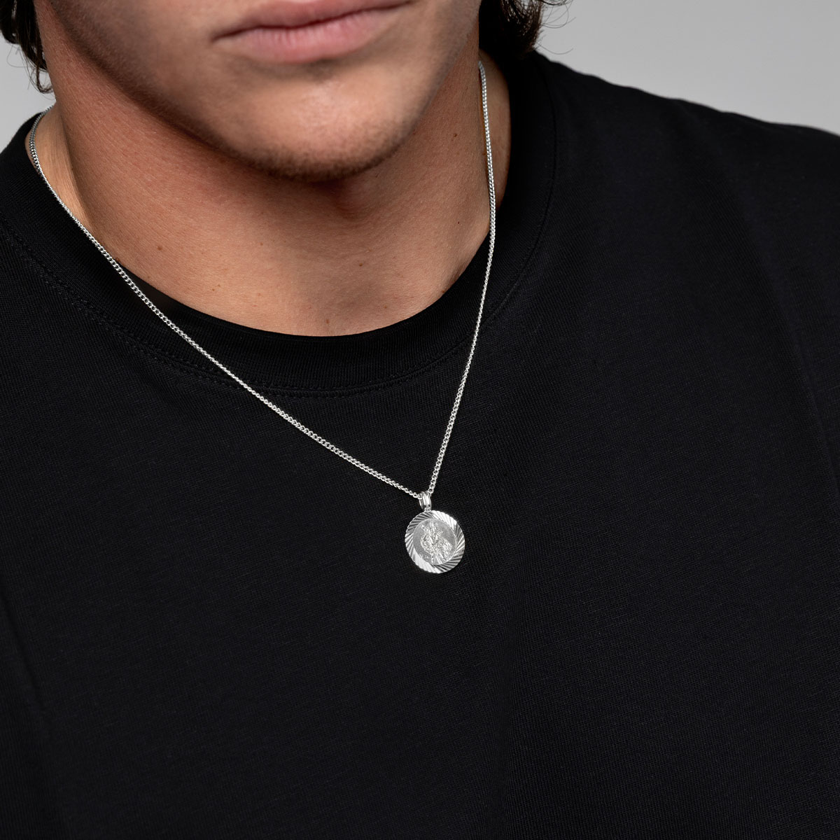 Home > Products > For Him > St Christopher Necklaces > St Christopher Silver Necklace – Round Ridged-Edge