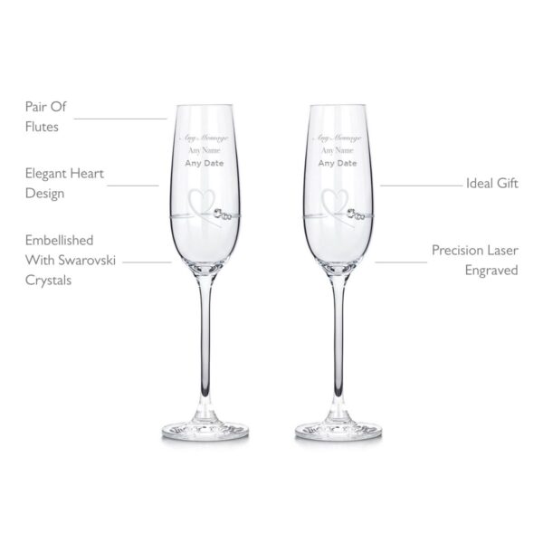 Personalised Diamante Heart Glass Flute – Set of 2
